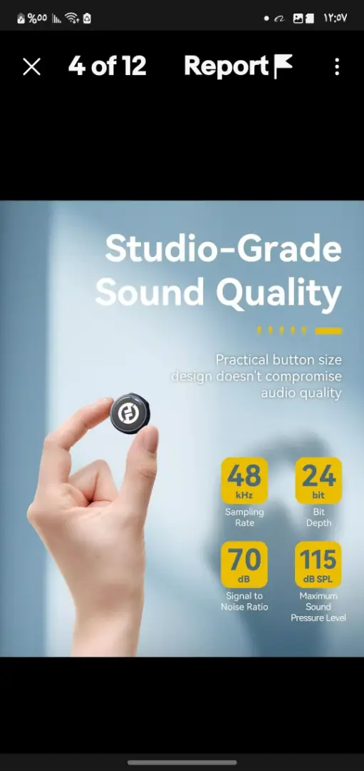 صوت بجودة الاستوديو: يدعم الميكروفون تنسيق صوتي 48 كيلوهرتز/24 بت، مع نسبة إشارة إلى ضوضاء تبلغ 70 ديسيبل لضمان صوت نقي وواضح.