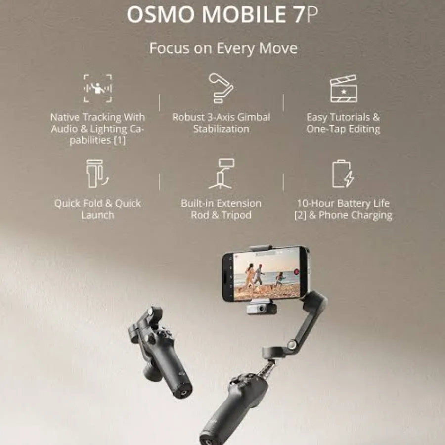 عصا تمديد وقاعدة ثلاثية مدمجة: يتميز Osmo Mobile 7P بعصا تمديد مدمجة تصل إلى 215 مم لزوايا تصوير أكثر تنوعًا. كما يشتمل على قاعدة ثلاثية مدمجة، مما يجعله مثاليًا لمنشئي المحتوى الفردي.