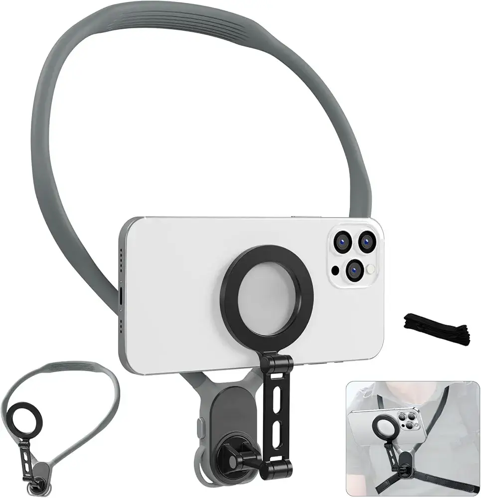 بدون استخدام اليدين: مصمم لتصوير مقاطع الفيديو (POV/Vlog)، ومشاهدة المحتوى، وإجراء مكالمات الفيديو دون الحاجة لحمل الهاتف.