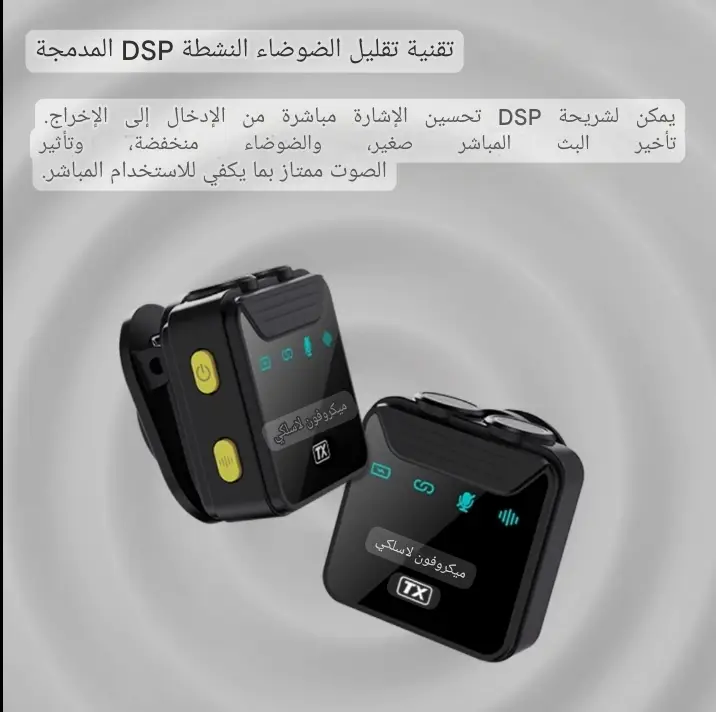 تقليل الضوضاء المزدوج: مزود بتقنية متقدمة لتقليل الضوضاء النشطة، مما يضمن تسجيل صوت نقي وواضح حتى في البيئات الصاخبة.