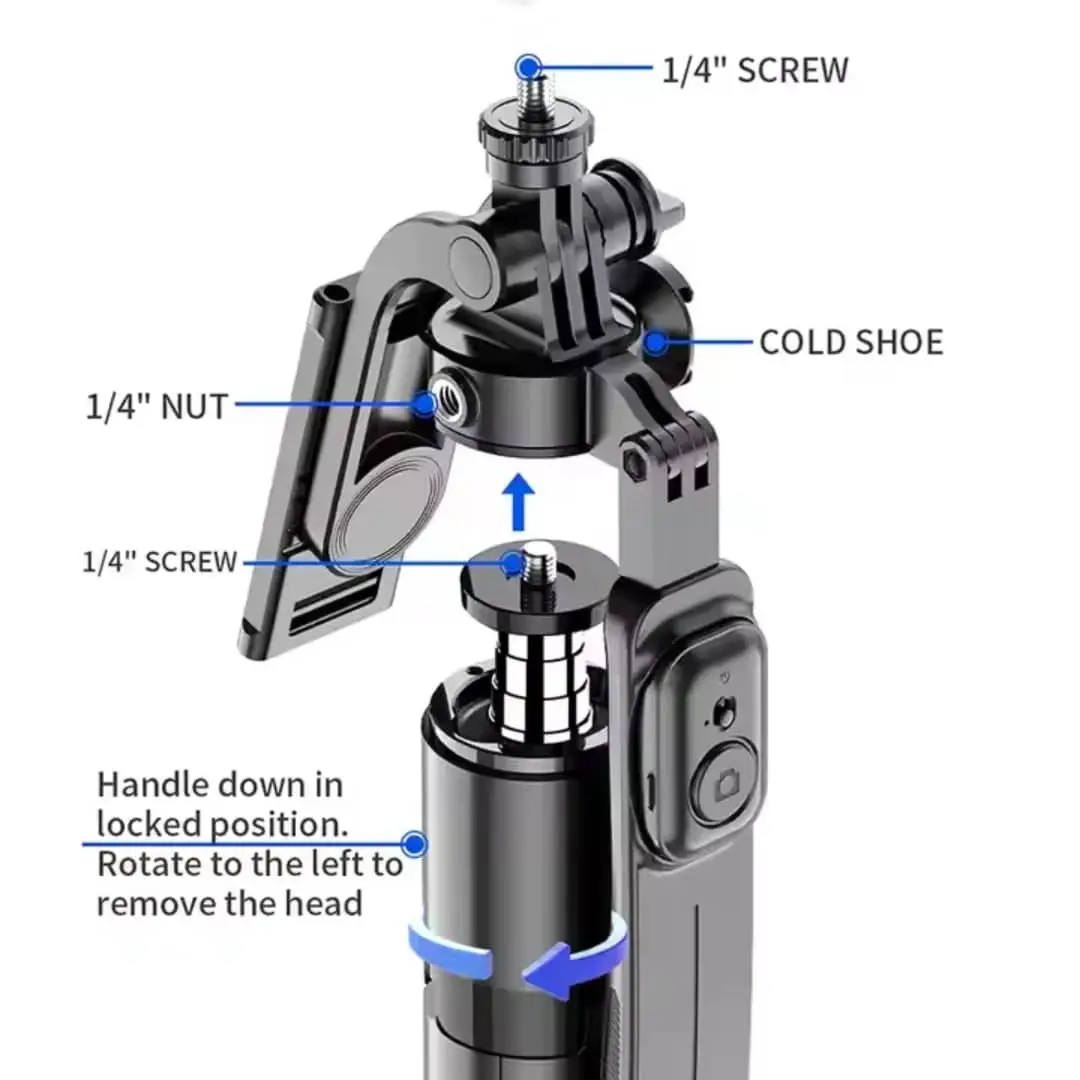 تصميم 3 في 1: يعمل كعصا سيلفي وحامل ثلاثي القوائم (ترايبود) وجهاز تحكم عن بعد بلوتوث.