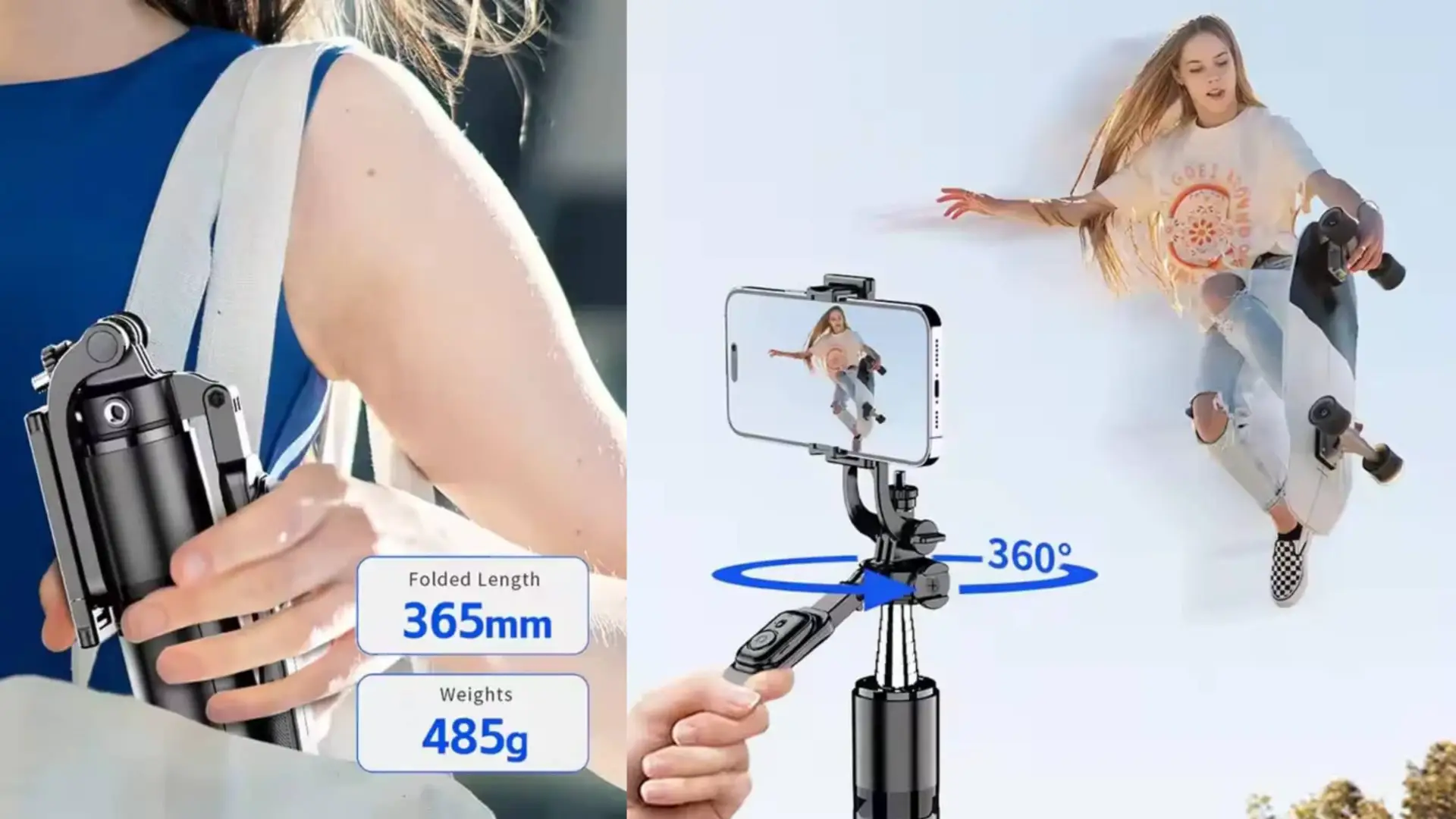تصميم مدمج ومستقر: عند طيه، يصبح مدمجًا وخفيف الوزن لسهولة الحمل. ويحتوي على قاعدة عريضة وثابتة عند فتحه كحامل ثلاثي القوائم.