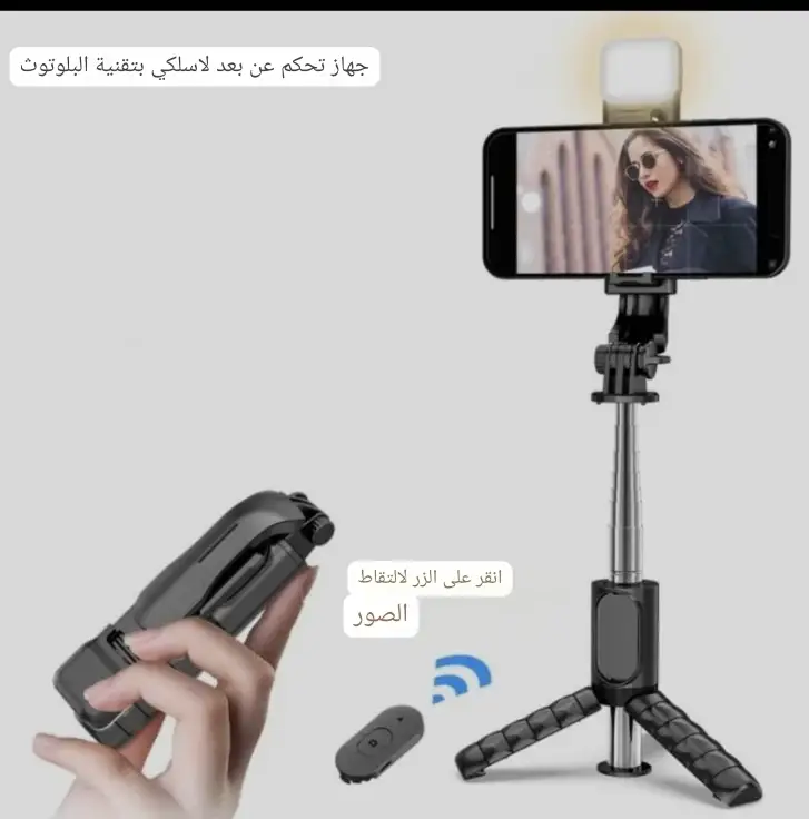 متعددة الوظائف: تجمع بين وظيفة عصا السيلفي اليدوية (Selfie Stick) ووظيفة الحامل الثلاثي القوائم (Tripod).