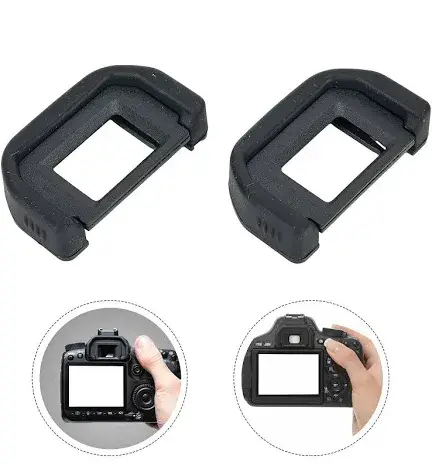 غطاء العين (Eyecup) الموجود في الصورة متوافق بشكل أساسي مع مجموعة واسعة من كاميرات كانون DSLR من طرازات EOS EF و EOS EB. يظهر في الصورة نوعان من أغطية العين، وكلاهما يُعرف باسم طراز EF أو EB البديل، وهما مصممان لتوفير الراحة ومنع دخول الضوء الجانبي إلى معين المنظر (Viewfinder).