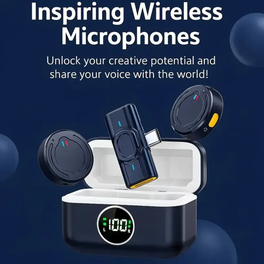 علبة الشحن: تأتي المجموعة مع علبة شحن أنيقة تعرض مستوى البطارية رقميًا، وتوفر شحنات إضافية للميكروفونات (حتى 30-35 ساعة إجمالية من الاستخدام مع العلبة).