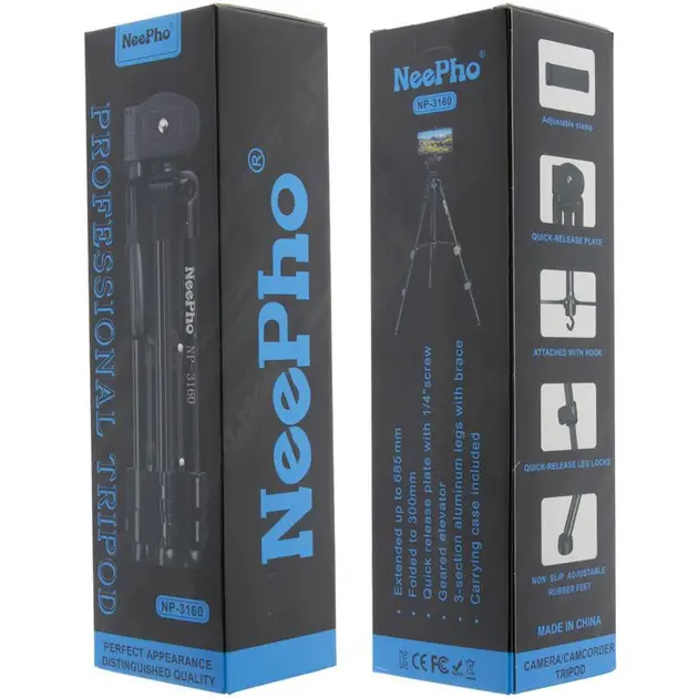 حامل الكاميرا الاحترافي NeePho NP-3160 هو حامل ثلاثي القوائم مصنوع من الألومنيوم خفيف الوزن ومناسب للاستخدام مع الهواتف المحمولة وكاميرات الفيديو والكاميرات الرقمية.