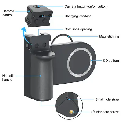 مقبض كاميرا هاتف مغناطيسي متعدد الوظائف