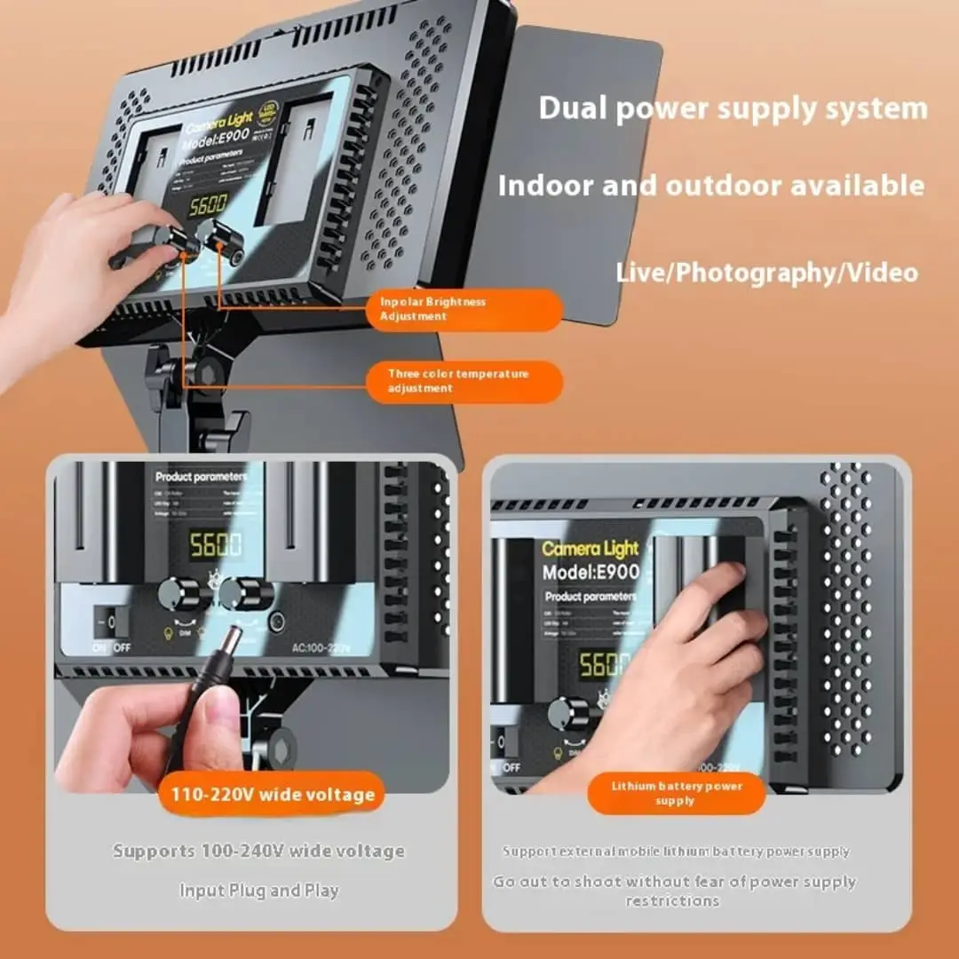شاشة رقمية مزدوجة (Digital Display): تتيح للمستخدم رؤية وإعداد معلمات الإضاءة بدقة، مثل درجة حرارة اللون والسطوع.